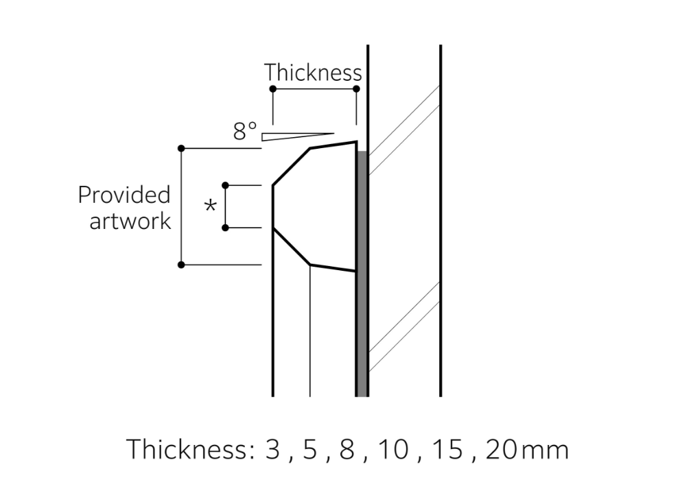 The outline edge of the provided artwork becomes the shoulder of the actual letter. You can choose the Bevel size from the table below. Please note that the Bevel size you choose will limit the available stroke of the letter.