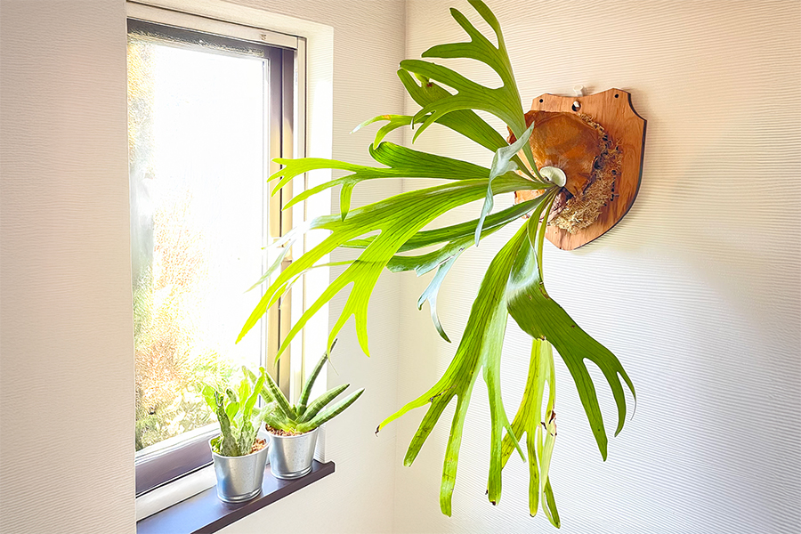 ボタニカルハンガーは、ビカクシダやチランジアなど、木の幹や岩肌に着生して自生する植物を、本来の姿で楽しめるアイテムです。植物が自然に根を張り、成長していく様子を、壁面で表現できます。